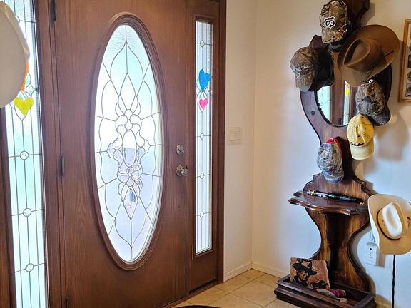 The show stopper of the subdivision! Beautifully set on a corner lot this 3 bedroom 2 1/2 bath home is move in ready being sold ''As Is''. Spacious kitchen with lots of storage - BIG pantry - solid surface counter tops - breakfast bar - kitchen table area -formal dining room adjacent. Vaulted ceilings in the living area make this space feel open and roomy. Oversized 2 car garage - lots of exterior parking to spare. The yard is beautifully landscaped both front and back yards (the antique décor does not convey) with raised planting beds for your garden and large exterior store rm. Spacious covered rear patio with access from the dining room, garage, and master bedroom. Solar package lease (APS deal that will be transferred to new owners) Call today for an appointment to view your next home!