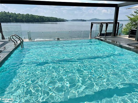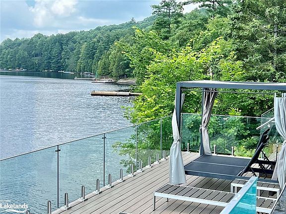 Luxurious waterfront condo in the Longview building at the Waterfront of Grandview. This is a true two bedroom corner unit condo with large windows on the main level. No elevator necessary. 1879 sq ft of sunny & bright living space. Modern gourmet kitchen has a walk-in pantry with an additional refrigerator & built-in cabinets. The kitchen boosts a large waterfall quartz island plus herringbone backsplash and high end appliances. Two full bathrooms plus a laundry room. Open concept with lots of room for dining plus two living areas. The separate entrance foyer is a generous size. This unit comes with the largest storage locker available & it is right next door! In floor radiant heating. Modern security system. Water Purification system. Modern gourmet kitchen. The kitchen boosts a large waterfall quartz island plus herringbone backsplash and high end appliances. Heated underground garage space & one above ground parking location. Exceptional amenities are part of the appeal of this property. A rooftop terrace with long views up & down Fairy Lake. Beautifully landscaped with Muskoka rock steps leading down to the heated infinity pool with lounges/gazebos & an outdoor kitchen/eating area. You can also wade into the lake from the sandy beach or have your kayaks stored on the racks right there at your exclusive waterfront. Boat slips are available on property for a seasonal fee. There are several sitting areas down at the water with exceptional lake/sunset views, comfortable chairs & firepits. The firewood is already split & waiting for you to enjoy. Fully furnished and immediate occupancy. This is the ultimate Muskoka residence - it does not get better than this.
