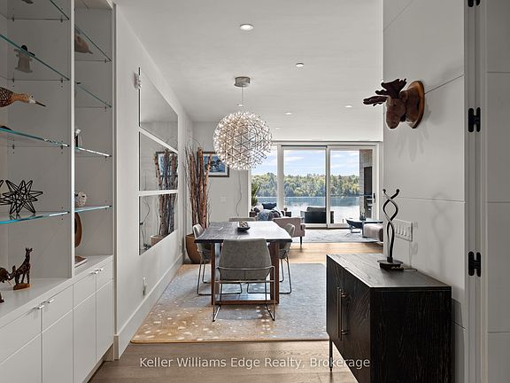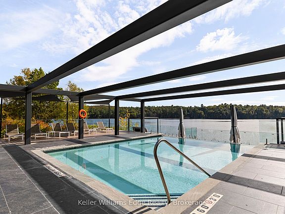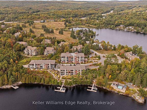 Welcome to the exclusive 'Waterfront at Grandview' residences on Fairy Lake. Enjoy lakefront panoramic views from your private balcony, from inside the spacious and well laid out space, or enjoyed with friends and family from the exclusive rooftop patio. The exterior private amenities of this residence include a stunning infinity pool and patio with kitchen. Walk the well manicured grounds and you can enjoy your private lakefront sand beach access, lakeside fit pit, waterfront dock as well as private boat slips*. Inside the residence you'll have access to a gym, party room and use of a rental guest suite*. (*Subject to availability. See prop. mngr. for details) The condo itself has an excellent open floorplan with ample built in custom cabinetry. Modern design elements perfectly merge with the natural rustic surroundings. The large floor to ceiling windows in the main living area allow unimpeded views of the surrounding natural beauty. A BBQ with venting and lighting are built into your exclusive balcony without taking up valuable lounging space. Underground parking is equipped with an EV charger along with a large storage unit. Enjoy all that lakefront cottage country living has to offer without the hassle of maintaining a cottage!