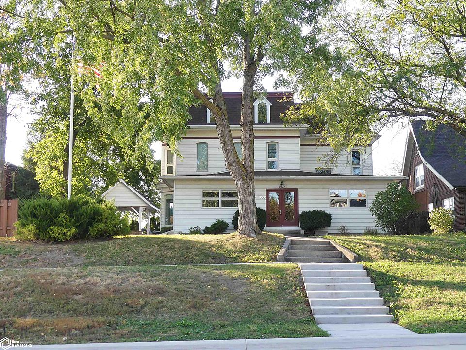 ZONED FOR RESIDENTIAL OR BUSINESS USE! Well maintained 2 story home with 3 bdrms, 3 bath areas, 2 car garage and detached store/workshop with alley access! Updated 2 story home features 3 bedrooms, 3 bath areas and 2 car garage along with a separate building used as a workshop. So many original characteristics with pocket doors, hardwood floors, french doors, open staircase. Custom kitchen with stainless steel appliances, 2 pantries, breakfast bar and wonderful views of the yard! Main level laundry include washer/dryer. Upper level has many options; open area with kitchenette, pool table, 3/4 bath and a spiral staircase to the main level kitchen. All electric home with updated geo thermal heating/cooling in 2023. Large 2 car garage. Nice yard with composite roofed deck & paver patio, mature trees, many perennials, privacy fenced on both sides. Detached 30x16 workshop heated/cooled and 1/2 bath off the alley has many uses. This property is zoned RB1 (Residential/Business) allowing many options for this ONE OF A KIND property!