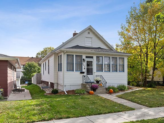 Charm and character abound in this inviting 3-bedroom, 2-bath bungalow, where classic details meet thoughtful updates. From the moment you arrive, the charming front porch sets the tone for a warm and welcoming home. Inside, beautiful hardwood floors flow throughout the main living areas, adding timeless appeal. The updated kitchen features a farmhouse sink and modern finishes, perfectly blending style and function. Both the furnace and central air system were newly installed in 2021, offering comfort and efficiency year-round. Outside, a spacious 28x24 double garage with paved alley access provides ample room for vehicles and storage, along with additional off-street parking. Enjoy outdoor living in the private, fenced backyard complete with a patio—ideal for relaxing or entertaining. Located just a short stroll from a nearby park and bike path, this home offers not only charm, but convenience and lifestyle, all in one delightful package.