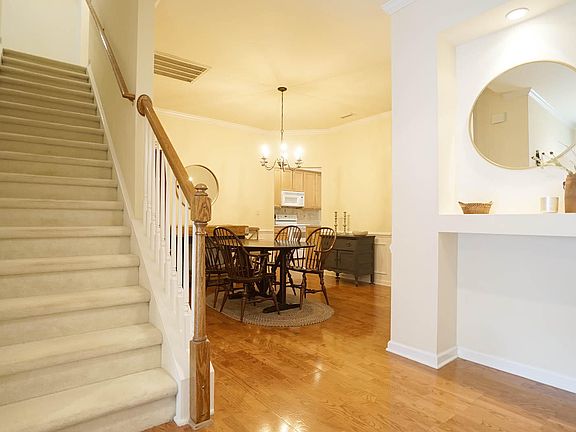 These don't come on the market often on Soft Tree. Spacious and well maintained end unit in Country Club Heights. This home features 1st floor primary BR plus a 2nd BR, hardwoods in the foyer, dining room and kitchen. Large living room with fireplace/gas logs, kitchen with all appliances conveying inc. washer/dryer. Upstairs there is a 3rd br or bonus room with a full bath. Two car garage, screen porch overlooks very private rear yard. Carpet just cleaned, new roof in 2021, reasonable HOA dues. Showingss can start at 3:00 8/22.