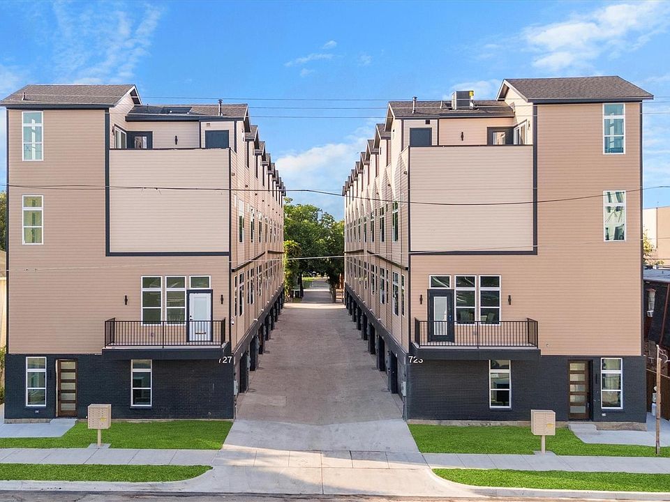 NEW TO MARKET AND MOVE-IN READY! STUNNING CORNER UNIT WITH TONS OF EXTRA WINDOWS AND A BALCONY! THIS 3 bedroom, 3 & half bath, two car garage townhomes are located in the Bishop Arts area, close to shopping, restaurants, with easy access to all major freeways. Imagine being the first tenants to lease these stunning brand new townhomes! Edgy, modern design bringing a natural feel inside with the wood trim and unique tiles . High end finishes throughout. High ceilings, large windows bring tons of natural light inside! Multi-purpose entry area with a large storage closet on the first floor. Second floor living areas with guest bath. Third floor houses the primary suite with the stunning ensuite bathroom, and the second bedroom with a light, airy ensuite bath. The fourth floor is comprised of an enormous flex space with high ceiling and sliding door to the rooftop deck. Can be used as the primary bedroom, or second living space. Fourth floor bathroom has double sinks, stunning shower and closet. Deck has a gas outlet for grilling and a water faucet. See 3D Zillow tour.