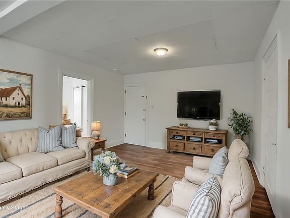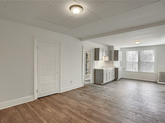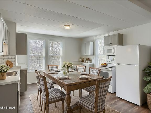 The rent includes water, oil heat, sewage and trash, and the tenant is only responsible for their electric in this bright, airy and spacious 2 bedroom 2nd floor unit. The newer finishes and neutral color palette will match any style. Inside you will find a large renovated kitchen with built-in microwave, electric stove and refrigerator. This unit has new laminate flooring throughout, fresh paint and new windows. Located at the end of a quiet lane, the wooded setting provides peace and serenity all year long with a seasonal view of a lake. Located just minutes to the vibrant Main Street corridor of Zelienople, you'll enjoy the trendy restaurants, shopping and yearly community events. There is off-street parking.