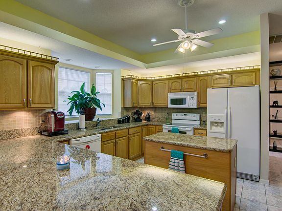 This is a beautiful 4 bedroom, with a Den/Office with a closet that could be considered a 5th bedroom, 2.5 bath, 2 car garage home located in the Royal Highlands area of Weeki Wachee. Minutes away from US 19, the Suncoast Parkway and shopping on HWY 50. This home features a completely remodeled kitchen and brand new laundry room/multi-purpose area. 10 foot ceilings throughout and a 14 foot tray ceiling with crown molding in the main living room. The master suite is its own getaway boasting a huge room( 16.5'x20') and a large bathroom with a garden tub, shower, double vanities and a large walk-in closet. Freshly painted inside and out. Landscaping is freshly redone and the large, fenced in back yard is complete with RV parking, a shed, and a 400 sq ft deck in addition to the covered patio with a hot tub. Corner lot in a great neighborhood and move-in ready.