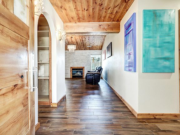 New custom front door and porcelain wood look floor tile throughout the entire house. New garage door, new 20' gated pass-through with RV hook-up. Extensively renovated bathrooms include floor to ceiling tile, walk-in showers, glass enclosures, wall mounted faucets and tub filler, quartz countertops, freestanding soaking tub and wood ceilings! New custom built-in bookshelves, mudroom, and linen closet, & custom closets in all bedrooms. The kitchen, extensively renovated, has all new matching appliances, quartz countertops, new custom cherry cabinetry, built-in pantry storage, island range hood and built-in seating and table nook. New refrigerated air and high efficiency sealed combustion furnace/water heater-all under a new roof! A wood burning fireplace in the open floor plan!