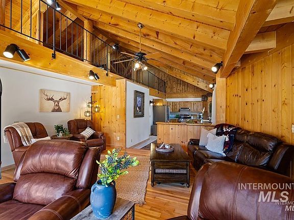 Enjoy this hard to find fully furnished mountain retreat surrounded by rivers, creeks & National Forest Land. Frequented by elk, deer & eagles. This 2 acre parcel overlooks 370' of the South Fork Payette River & 465' of Clear Creek frontage on the West side. Property has additional power, separate address & septic tie in for the option to have an additional build. The main home features large wrapped beams with exceptional craftsmanship, hand drawn support logs & elevated views of the Payette River. Great room offers custom wrought iron spiral staircase leading upstairs to find 2 open concept bedrooms & additional flex space leading into a bonus room. Refinished hardwood floors throughout the main level. Guest suit offers a new bathroom, bedroom and second kitchen with separate exterior entrance that would allow for an Airbnb or just extra elbow room. Private road for access to riverfront campgrounds! Water rights from clear creek. Great winter access! Remodeled 730 sq. ft. guest suite built in 1926.