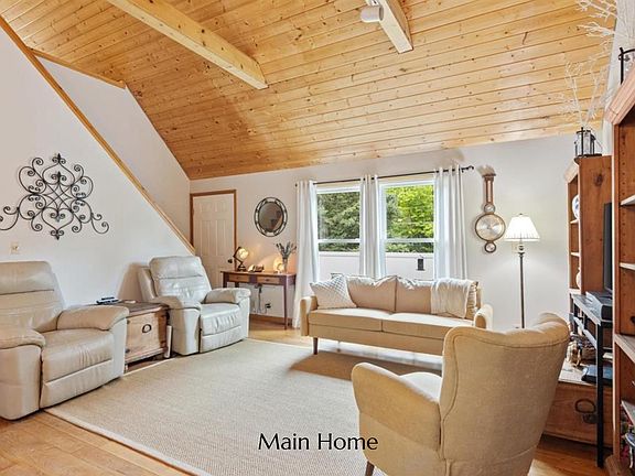 Nestled in the heart of Glen Arbor Township, just minutes from charming downtown Glen Arbor, this beautifully maintained 4-bedroom, 3-bathroom home offers the perfect blend of comfort, privacy, and versatility. Set on a serene lot, the property features lush landscaping that creates a backyard oasis perfect for relaxing or entertaining. Inside, enjoy an open-concept layout with vaulted ceilings, stunning tongue-and-groove woodwork, and abundant natural light. The lofted primary suite offers privacy and charm, overlooking the spacious living area below. Recent updates provide peace of mind and energy efficiency: New roof & garage door (2016), New furnace (2017), New well tank (2022), New windows with lifetime warranty (2025), Natural gas ventless garage heater (2024), A whole-house generator ensures you're never left in the dark, and the clean, dry Michigan basement provides additional heated storage. Enjoy the bonus of a 1-bedroom, 1-bath carriage house apartment with separate entry—ideal as a short-term rental, long-term lease, or guest quarters. Generate income to offset your mortgage or rent out both units for investment potential. Additional features include a 2-car attached garage, central A/C, and a 7’ x 18’ greenhouse—perfect for year-round growing and hobby gardening. Whether you're seeking a private full-time residence, vacation getaway, or income-producing property, this Glen Arbor gem checks every box.