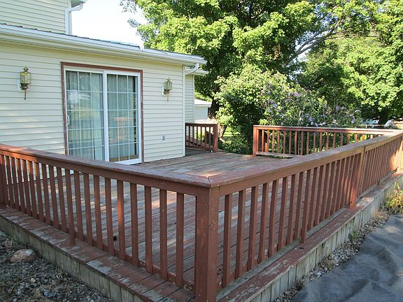 An open front porch greets you. Large kitchen/dining room great for entertaining with lots of cabinets, counter space and island. Appliances included (dishwasher, refrigerator, HE washer and dryer). 1st floor laundry and bedroom. Newer windows, roof 5 years, UV water system. In-line well pump with pressure tank installed 2019 with updates to the electrical panel. Weatherization updated, tankless hot water heater and new furnace installed all in 2017. Nice size deck and 2.5 car garage with lean-to on the back.