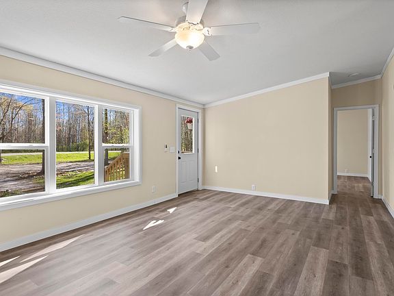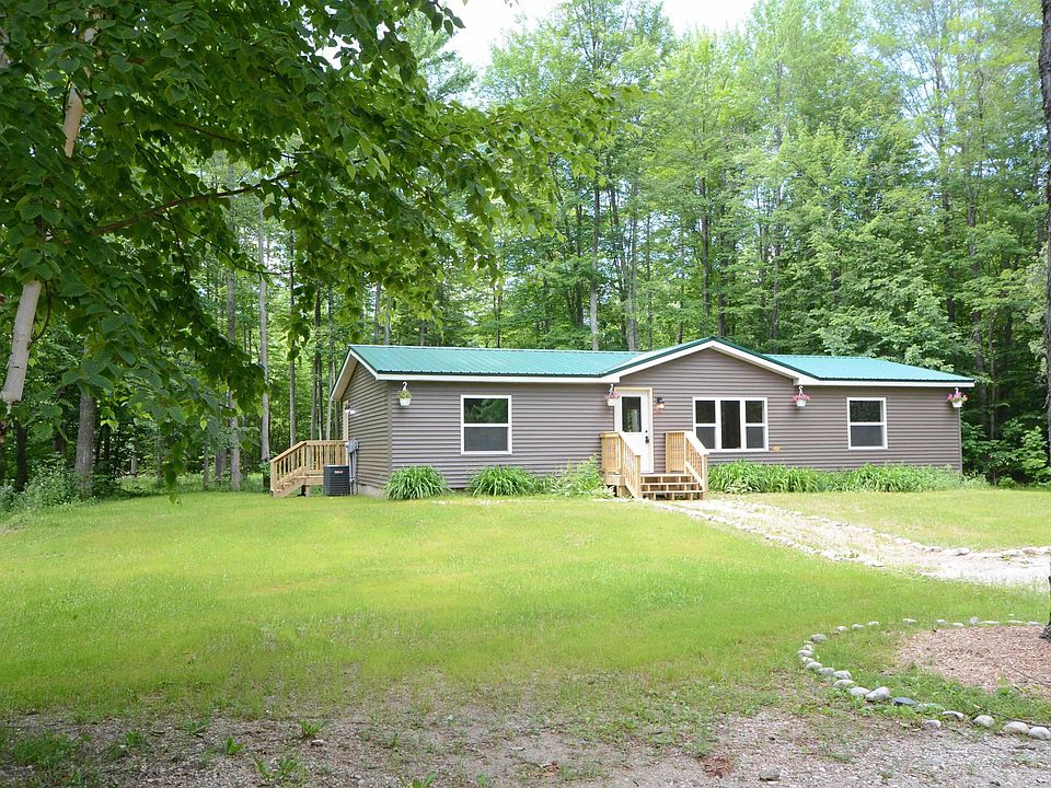 Completely renovated and move-in ready! This beautifully updated 3-bedroom, 2-bath home offers modern comfort in a serene wooded setting—all just off Cadillac Hwy, yet set well back from the road for added privacy, safety, and quiet. Nearly every inch has been upgraded: new roof, siding, windows, doors, subfloor, paint, and flooring throughout. The kitchen shines with brand-new cabinets, countertops, Whirlpool stainless steel appliances (including a 5-burner gas stove), and updated lighting. Enjoy year-round comfort with new central air and updated water lines, plus a new well pump for added peace of mind. The spacious primary suite features a fully remodeled en-suite bath with a double vanity, shower, and soaker tub. Both bathrooms have been tastefully updated, and all bedrooms are freshly finished. Step outside to a brand-new deck overlooking the peaceful, wooded yard—perfect for relaxing or entertaining. Thoughtfully renovated with quality finishes and attention to detail, this home offers the best of modern living in a natural setting.