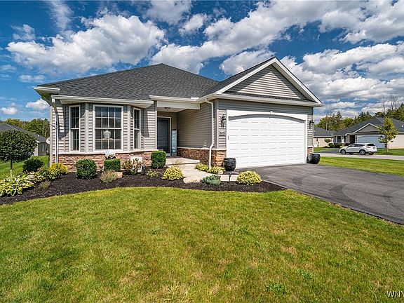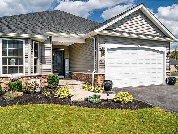Exceptional former model patio home now available in Clarkview Estates! Modern living at its finest, this 3 bedroom 2 bath home is sure to impress! Soaring cathedral ceilings, gas fireplace with striking granite surround and luxury vinyl flooring throughout the living areas! Cook’s kitchen features large island with seating for 3, tiled backsplash and stunning lighting. Open concept living/ dining room. The primary bedroom has tray ceilings, large walk-in closet, and ensuite with walk-in tiled shower, vanity with double sinks. Two additional bedrooms and full bath. This exquisite home has many upgrades including a lawn sprinkler system, an 18’ x 9’ three season room and concrete patio! First floor laundry conveniently located near entry from attached garage. Ample storage space and full basement with egress window. Condo tax status! Don’t miss your opportunity to move right into this better than new home! Open House Sunday, October 5th 1-3pm!