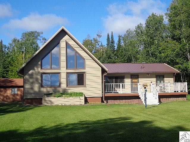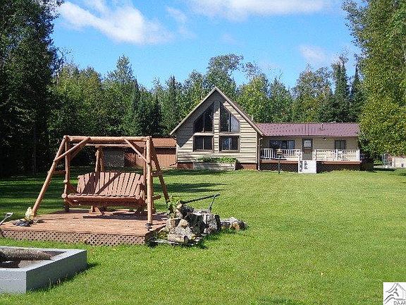 Enjoy your new life style on Island Lake, in this Chalet style maintenance free exterior with metal roof home. This home has open floor plan, with custom cabinets in kitchen and view of lake. The living room features gas fire place, vaulted ceiling, circular stairway to loft all of this with a great view of large yard and lake. Enjoy the level lot with fire pit and a little guest cabin near the water and a place to launch your fishing boat. For the handy person we have a 4 car tandem heated garage, great for storing your pontoon and boat's, also we have a bunk house with lots of storage. The crawl space and has been sprayed with foam for extra warmth. Truly a pride of ownership and all of this with a blacktop driveway. Lease rent is $2,770.00