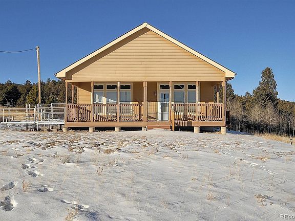 Nestled in the Ranch of the Rockies subdivision, with expansive mountain views of Colorado's Pike-San Isabel National Forests, you can enjoy privacy and seclusion on this 4.5-acre property. This 2 bedroom, 1-bathroom home provides comfort year-round, with forced air heating throughout the 1,200-sq-ft home in addition to a gas fireplace with floor-to-ceiling stone craftsmanship. Equipped with windows on all sides of the home to capture the magnificent 360-degree views. Detached shed located on the property for additional storage.