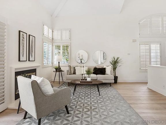 Step into the elegance of this 1-bedroom, + loft, 1.5-bath, corner end-unit townhome with attached 1 car garage in the highly desirable University City neighborhood at Renaissance Capri! Newly renovated with a designer's attention to detail, this home offers contemporary living at its finest! The remodel includes updated kitchen and bathrooms with new interior paint, new vinyl plank flooring, carpeting, lighting, baseboard, and so much more! The kitchen has been tastefully updated with new shaker cabinets, quartz countertops, and high-efficiency appliances...creating a stylish and functional space! Featuring a generously sized primary bedroom that includes a fully remodeled en-suite bath and walk-in closet. Upstairs includes a loft bedroom or office with 1/2 bath. The vaulted ceilings and natural light floods the interior through the large windows that include plantation shutters. Access the spacious patio through the sliding doors off the living room & primary suite. Walking distance to the local Renaissance Center with shops, restaurants and Westfield UTC shopping center! Minutes to UCSD, La Jolla Beaches, and quick access to the 5 & 805 freeways. DON’T MISS OUT ON THIS BEAUTY!