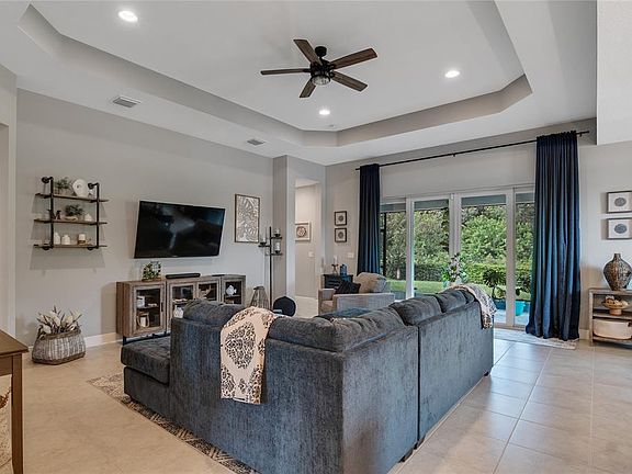 Phenomenal GHO home built in 2022—why wait to build? The gourmet kitchen features GE Profile appliances, a double oven, cooktop, center island, single sink, and French door refrigerator. Tray ceilings accent the dining area and living room, adding architectural interest. A dedicated laundry room with cabinetry provides extra storage and functionality. Located in a desirable community close to shopping, dining, and beaches.