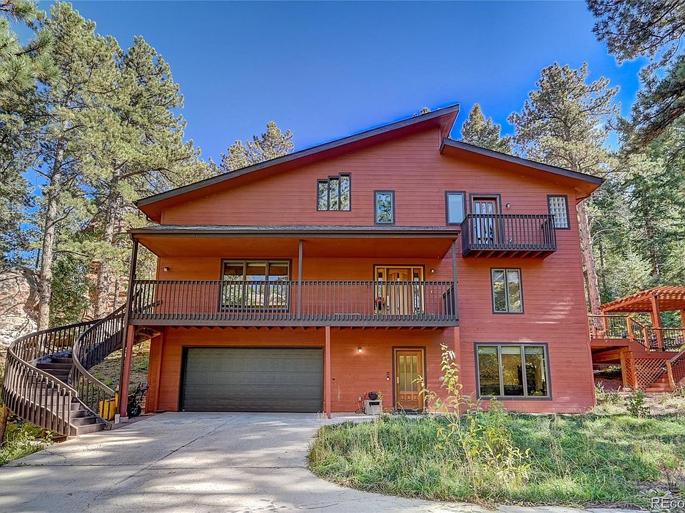 From the moment you enter the driveway, the natural beauty and privacy of this amazing home welcomes you!  Enjoy this gorgeous, remodeled home with spectacular panoramic views from every angle! Situated on .88 acres that backs to National Forest, this is truly your Rocky Mountain playground! Tastefully updated, this home offers 3,637 finished square feet with 3 bedrooms, and 4 baths.  The great room comes with Red Rock & Forest views from the Anderson window and the vaulted pine ceilings are gorgeous. The gas fireplace surrounded by natural stone will keep you warm and so will the radiant heated floors. The whole house sound system follows you from room to room. Automatic ambient lighting adds comfort and security. This elegant kitchen is ready for all your biggest gatherings!  This gem includes a large center island with 6-burner kitchen Aid gas stove, built-in microwave, custom backsplash, bamboo cabinetry, exotic grade granite countertops, separate pantry.  Step out on to your multi-level deck with privacy and stunning views for your gatherings in the spring and summer. Move to the upper level and find the primary suite featuring more stunning views with unique architecture throughout!  Your primary bathroom has elegant finishes only found in the most unique of homes!  One additional bedroom caps off this amazing level with its own private ¾ bathroom and quaint balcony!  The walk-out level boasts a home theatre room, small workshop, and an additional room for either your guests or office and includes its own 3/4 bathroom. Don't forget the oversized 2 car garage that includes a workshop area, additional pantry storage with fridge, and maintains about 50–60-degree temperatures. Perry Park boasts acres of open space, hiking/biking trails, horse stables & stunning red rock formations & it is only 5 minutes from Douglas County's new Sandstone Ranch Open Space & Sandstone Ranch Trails. Only 20 minutes to Castle Rock & approx. 60 minutes to DTC or CO Springs.