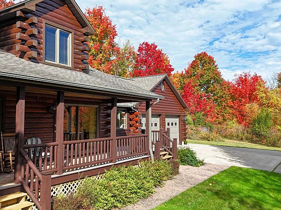 Set on 10.3 peaceful acres in Acme, this 3-bedroom, 2.5-bath log home offers privacy, space, and the natural beauty of Northern Michigan—just 15 minutes from both Traverse City and Elk Rapids. Additionally, a four minute drive down Brackett Road takes you directly to the Traverse City Horse Show! A quiet road leads past cherry orchards and horse farms before curving into a wooded canopy forest. A winding blacktop driveway takes you up to a beautiful hilltop clearing, where the 3,000 sq ft home sits surrounded by nature. Inside, you’ll find tongue and groove ceilings, a large stone gas fireplace, hickory cupboards, and warm wood finishes throughout. The living spaces are open and welcoming. The main floor living layout makes this home exceptionally accessible and easy to live in. The basement includes a finished room with an egress window and closet, making it a conforming fourth bedroom. The 2-car garage is plumbed and wired, offering easy potential for extra finished space. For RV enthusiasts, a utility run under the driveway leads to three RV hookups with septic, two 50-amp, and one 30-amp circuits. This is a peaceful, wildlife-filled setting—deer, birds, rabbits—perfect for anyone looking for space, quiet, and convenience in the heart of Northern Michigan.