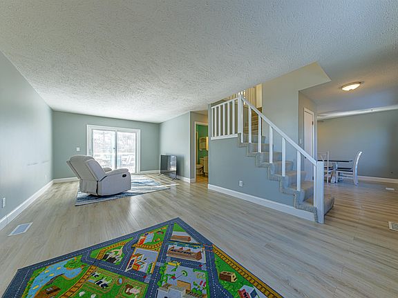 Beautifully Updated 1.5-Story Home on a Spacious Lot in Newburgh! This charming 1.5-story home sits on a generously sized lot and boasts numerous updates throughout! The remodeled kitchen features white cabinetry, solid surface countertops, a stylish subway tile backsplash, stainless steel appliances, tall faucet, and durable Pergo wood-look laminate flooring. The living room also showcases the same updated flooring, along with newer Champion sliding doors that lead to a spacious deck—perfect for outdoor entertaining. The laundry room and half bath have been updated with modern flooring and fixtures, while the upstairs features three bedrooms, a full bath with new fixtures and ceramic tile flooring, and a versatile loft area ideal for an office or reading area. The attached garage includes a convenient service door to the backyard, where you'll find a semi-private retreat complete with a large deck and patio, and a 12x20 storage shed for all your outdoor needs. Attractive landscaping enhances both the front and back yards. Recent updates per the owner include a rebuilt deck and new water heater (2024), HVAC (2017), back roof (2019), replacement windows, updated lighting, GFCIs, various plumbing and electrical upgrades, privacy fencing, and more! Don’t miss out on this move-in-ready home with modern updates and a fantastic location!