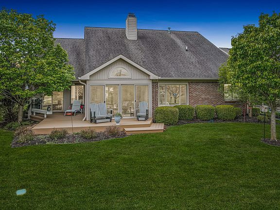 The golf-course view, 3 BED ranch in River Glen, one of Fisher's most sought-after neighborhoods. Enjoy the privacy of this golf-course lot on the 14th fairway from your screened-in patio. Enchanting curb appeal w/lush landscaping set the tone for this beautifully maintained home. Vaulted ceilings lend to the air of spaciousness. High ceilings greet you in the formal LR & DR w/elegant hrdwd flrs throughout the main living spaces. Relax in the tranquil owner's suite w/spa-like bath w/ceramic tile, double sinks, & large w/I closet. This versatile home takes perfect advantage of views from large windows & a screened porch that stretches the length of the rear of the house overlooking the golf course. Minutes to downtown Fishers - Nickel Plate.