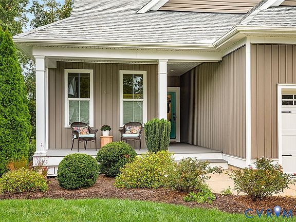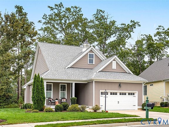 Two-bedroom cottage located on the Magnolia Green Golf Course. This charming one-level home offers an open floor plan, 9-foot ceilings, complete with a spacious family room and kitchen. A gas fireplace, gourmet kitchen, granite countertops, subway tile backsplash, beverage refrigerator, Samsung refrigerator, Monogram stainless steel appliances include 5-burner gas stove, microwave, oven, and dishwasher. The walk-in pantry, and oversized island are just a few of the luxuries you will enjoy. Engineered hardwood flooring is throughout the living areas. The dining area overlooks the covered porch, stamped concrete patio with a brick wood-burning fireplace, and the golf course. A primary bedroom also overlooks the golf course and includes a custom walk-in closet/dressing room. The primary bathroom features an oversized double vanity, a tile shower, and a tile floor. Bedroom #2 has new carpet. The laundry room includes a utility sink and enough space for a quiet desk area, storage, or a folding station. Front porch, back porch, and patio offer comfort and space for relaxing or entertaining. A 2-car garage, new garage door September 2025, irrigation, and mature landscaping complete this beautiful home. This home has been meticulously maintained and is in pristine condition, both inside and out. Amenities include 3 pool locations, playground, tennis courts, pickleball courts, bocce courts, clubhouse, and paved trails.