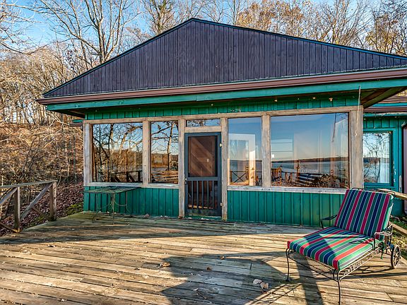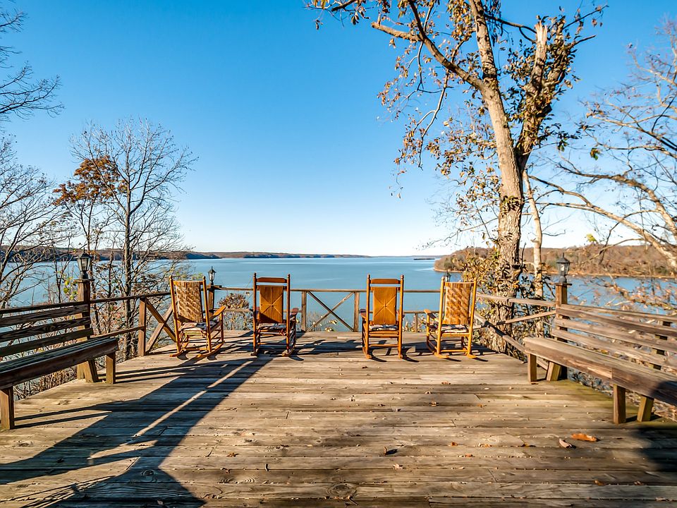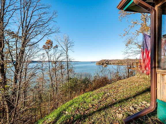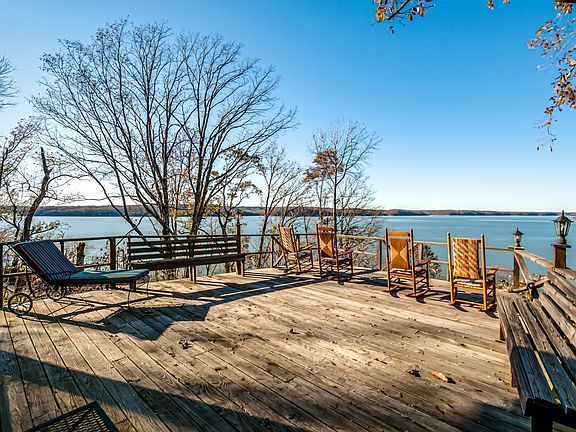 A chance to own a premier property located at the end of Turkey Creek Road on Kentucky Lake/TN River. On a quiet point sits a charming 3 bed, 3 bath cabin boasting views down river for 8+ miles! The cabin offers an open concept floor plan, perfect for large family gatherings, a wood burning fireplace, sleeping porch, an additional screened porch and a detached 24x30 garage that is perfect for boat/UTV storage or potential to finish for additional bunk space! Great dock wt magnificent sunsets
