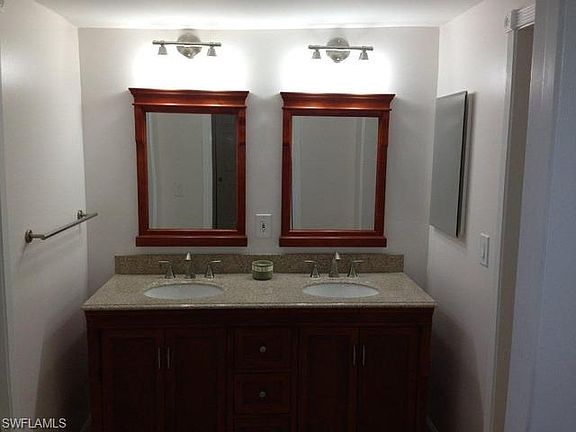 The Best of Naples Park. Remodeled and beautiful duplex. 2 Bedroom & 1 Bath. Approximately, 850 sq. ft. of private living area plus about 400 sq ft. of common laundry and lanai area. Wood cabinets, glass tile mosaic inlays in shower, high-end brushed nickel fixtures, beamed ceilings, crown molding, granite counter tops, stainless steel appliances, built-in microwave, dishwasher, custom island with counter height seating, track and pendant lighting, remote controlled lights, fans and A/C, private garden, walkways, screen lanai, picnic area, fire-pit area, situated on large double lot with lots of room to roam. Non-smokers only. First, last and security will move you in. Please do trespass on the property or disturb the tenants without an appointment.