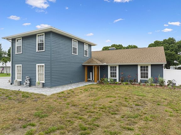 Check out this 4 bed 3 bath completely remodeled home with no HOA. The home features a newer roof (2020) and AC (2019). 2 of the bathrooms have been remodeled, new upgraded and extended paver driveway, walkway, porch and pool deck(2023), updated PEX plumbing(2023), pool resurfaced (2023), new pool pump (2023), CORETec flooring (2023), white PVC fence(2021). tongue and groove ceiling and new ceiling fans on back porch(2024).There are too many upgrades to name. The home also has a loft upstairs and an office. huge corner lot on almost half an acre of land.Room sizes approx and subject to error.