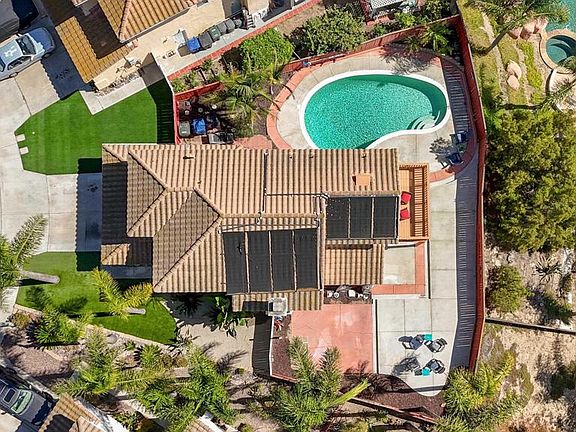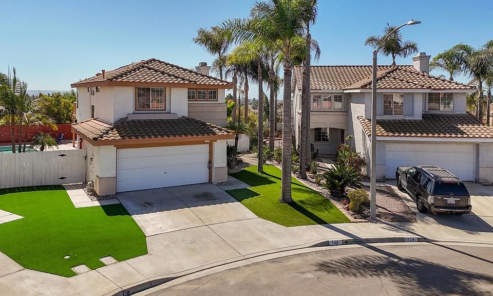 Rancho Del Rey View Home! Nestled on a quiet cul-de-sac, this 3BR/2.5BA residence showcases panoramic views of Downtown San Diego, the ocean, and the Coronado Bridge. The spacious kitchen offers granite counters, a center island, and custom lighting. A welcoming great room—currently configured as a living and dining area—features stylish tile flooring and a cozy fireplace perfect for cool evenings. Enjoy year-round comfort with central AC and a 2-car garage equipped with an EV charging station. The backyard is designed for entertaining, featuring a sparkling pool and an expansive low-maintenance yard. The front has fantastic curb appeal, featuring lush tropical landscaping and lush turf. Upstairs, the primary suite features a private deck, perfect for soaking in sunsets and taking in the sweeping views. Conveniently located near schools, shopping, and freeways. No HOA or Mello Roos!