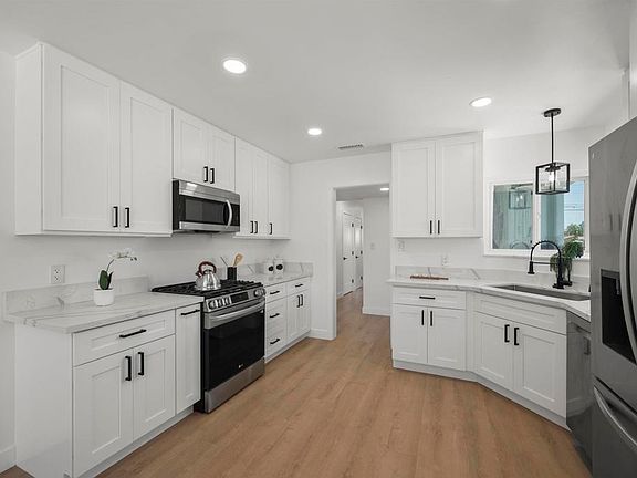 I'M GORGEOUS INSIDE! This beautifully re-done 4 bedroom 2 bath home boasts 1,683 square feet. Walk into a completely remodeled kitchen, new wood floors, all new SS appliances, new paint, new air conditioning, new furnace, new doors, new garage door with opener, and a fully fenced in backyard. The backyard and yard side yard has ample room for entertaining, gardening or children at play. A true 2 car garage will give you plenty of room for cars, storage, toys or a man cave. Inside the home there are multiple storage closets down the hallway just perfect for extra bedding, linen, games or other necessary items you may have. The master bedroom has its own private bathroom and the 4th bedroom could be considered a second master as it is even larger. The previous owners removed the closet however one could easily be rebuilt, A major bonus feature of this gorgeous home is that it is equipped with solar. (buyer to assume) The perfect sized backyard is fully fenced and there is a useable side yard. The possibilities are endless! If your looking for a spacious home with plenty of room for your family, this is it! 1,683 square feet of beautiful space! Close to amenities, shopping and freeway access!