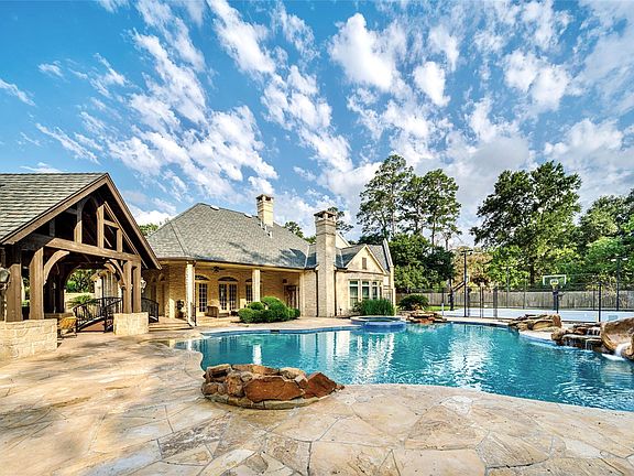 Exclusive resort-style living meets everyday comfort on expansive 3 private acres in coveted Rivercrest neighborhood. With 7,116 SF across two structures (per Seller, updated in 2012), this property offers flexibility for multi-generational living, entertaining, and car enthusiasts with an 8-car garage. The main residence features a spacious primary suite, home office, and open living/dining/kitchen. A separate structure boasts a game room, family room-gathering spaces, 2 ensuite bedrooms, plus a private guest suite with kitchenette and full bath. Outdoors: sparkling pool with cascading waterfalls, summer kitchen pavilion, sports court for basketball/pickleball, and spacious lawns for recreational activities. Rivercrest HOA allows on each property: a main residence, guest house, pool house, and stable; horses and farm animals permitted. Live here now or build your dream estate—minutes from Houston’s vibrant core. Proximity to Memorial Shopping Center, City Centre and The Galleria.