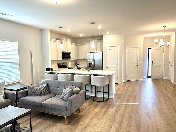 Be the first to rent this stunning home built in 2025! This home features an open-concept floor plan with three spacious bedrooms and 2.5 bathrooms. The main level boasts 9-foot ceilings, luxury vinyl plank flooring, and a hardwood staircase. The kitchen is open to the great room and sunroom, making it perfect for both everyday living and entertaining. The kitchen features quartz countertops, a tile backsplash, and bar top seating. Appliances include a self-cleaning stove, microwave, dishwasher, and garbage disposal. Upstairs, you'll find three bedrooms along with a laundry area. The primary suite is complete with a dual vanity, garden tub, separate shower, and a large walk-in closet. Step outside to enjoy the large, fully fenced backyard and patio, perfect for outdoor activities or entertaining. Additional features include a 2-car garage, full yard irrigation, and a tankless water heater for endless hot showers. Resort style amenities: community pool, clubhouse, hammock garden, firepit and playground! 20 minutes to Fort Jackson, 7 minutes to Sandhills shopping center, 15 minutes Sesquicentennial State Park.
