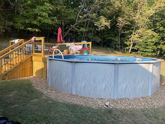 ranch style home, open floor plan. Walk-in closets, large master bath. Option of heat pump or wood burning stove. Pool with large pool deck and pool house area. Beautiful front porch view, surrounded by wooded areas. Every room remodeled.