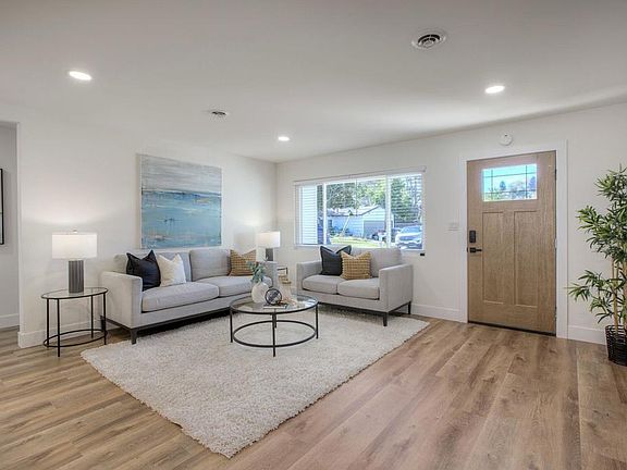 No HOA! Sitting at the end of a cul-de-sac, just minutes from Fallbrook’s town center and shopping, is a stunning single-story detached home that has been fully remodeled and is ready to be called yours! The open-concept kitchen featuring natural oak cabinets and quartz countertops flows seamlessly between the entry living room and the family den which is complete with a cozy wood burning fireplace and wood beamed ceilings. The patio sliders lead you out to a generously sized, pie shaped yard boasting a mature lime tree and plenty of space to create your own backyard oasis on this approximately 7500 square foot lot. Modern luxury vinyl plank flooring runs throughout this 3 bed home, while the 2 bathrooms each feature mirrors with digital defoggers and customizable lighting options for your self care routine. Additional upgrades include a brand new roof, new windows, epoxy flake flooring in the garage, and a brand-new HVAC system. Make this turn-key single-story stunner yours today!