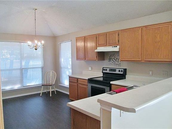 Beautiful brick home surrounded by big, tall, shade trees! Split bedroom arrangement. Open floor plan with large dining area and separate breakfast area. Wood burning fireplace. Great storage building, workshop with built in heat and air. Privacy fenced backyard with large flower beds, open patio, and built in fire pit. New wood look flooring in the kitchen and new carpet in the bedrooms. Walking distance to the school. One year home warranty.