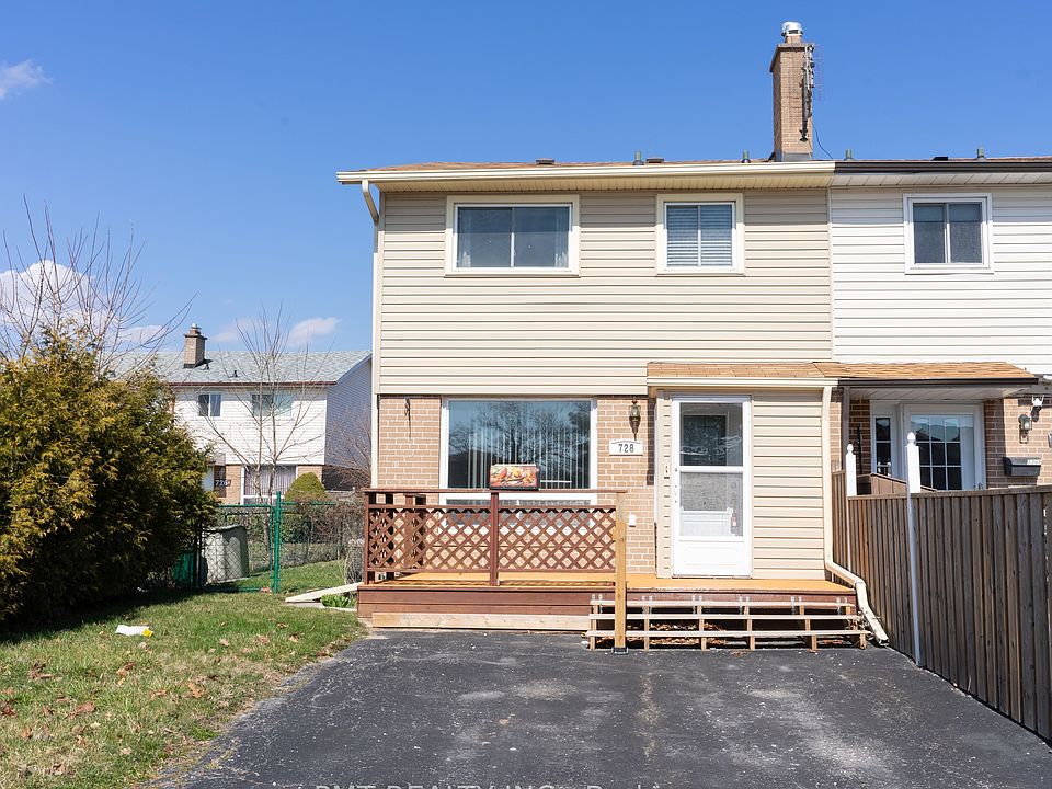 Welcome to 728 Krosno Boulevard! This charming townhome offers comfort, convenience, and a fantastic outdoor lifestyle. Enjoy a bright and functional layout with a walkout from the kitchen to a private deck perfect for outdoor dining and entertaining. The fenced backyard provides ample space for children or pets to play and even features a mature apple tree that produces fresh fruit each season. Located just steps from Balsdon Park, complete with a public dog park, and within walking distance to the waterfront and Pickering GO Station, this home is ideal for commuters and families alike. Shops, restaurants, and everyday amenities are conveniently located right across the street, making this an unbeatable location in one of Pickerings most desirable neighbourhoods.