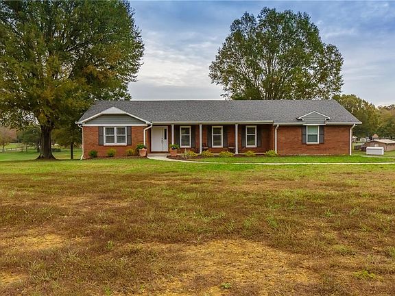 PHENOMENAL 3 bedroom, 2 bath RANCH on expansive 4.53 ACRES! Long circular driveway, detached garage/workshop, & attached 2 car garage. All brick home is low maintenance & excellently maintained. Generous front porch awaits the addition of your rocking chairs, bistro table or swing to enjoy the wonderful views. OPEN floor plan with spacious rooms throughout. HUGE living & family rms with painted brick surround gas log FP. Dining room is open to kitchen boasting granite, stainless appliances, & tile backsplash. Laundry provides utility sink & upper cabinets plus access to rear yard. Master suite has ensuite bath. Two additional bedrooms & full bath. Home boasts 1883 sq ft with awesome rear deck. SPECTACULAR views from deck allow you to soak in the beautiful 4.5 acre lot with hardwood trees & incredible Carolina sky. Large lot has room for swimming pool, trampoline, vegetable garden, tree house, firepit & room for any outdoor activity. Close to interstate & shopping. MOVE - IN - READY!!