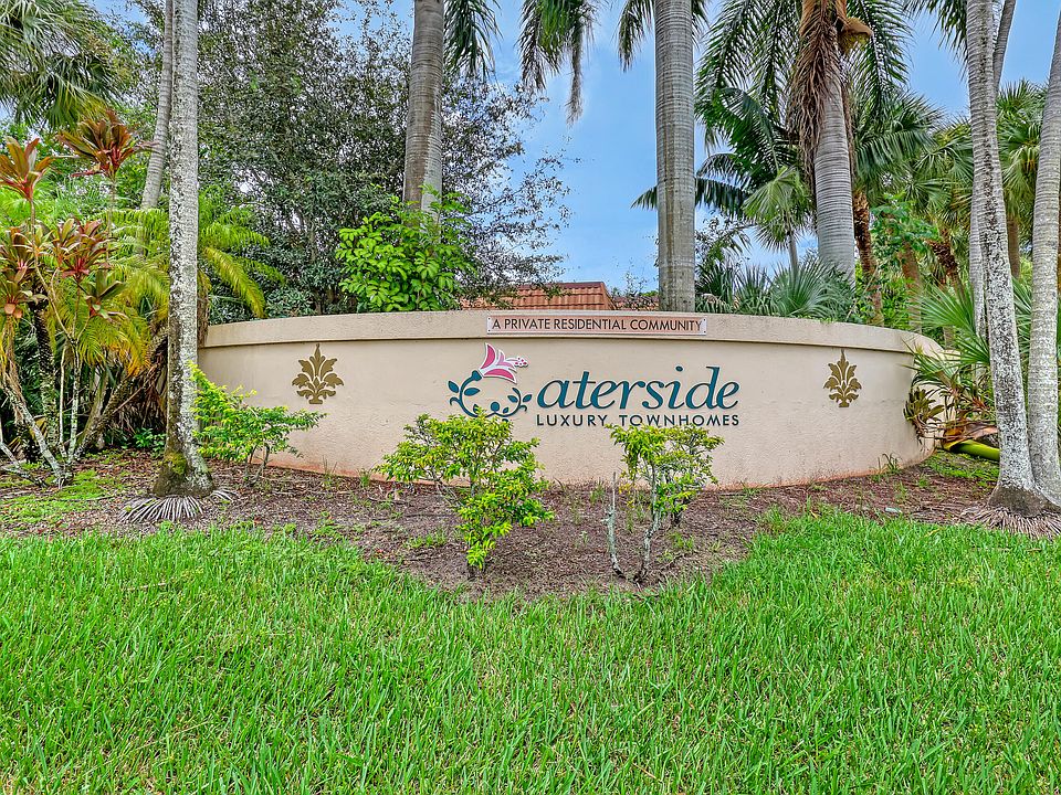 Discover a charming corner Townhome that perfectly combines comfort and convenience, located in the desirable Waterside Luxury Townhomes community, this 1,288 sq ft under living space has an inviting open layout filled with natural light. This residence features a gated front patio, 2 bedrooms, and 2.5 bathrooms, including a completely updated kitchen with stainless steel appliances. The main floor features an updated half bath, along with a washer and dryer for ultimate convenience. Modern porcelain tiles flow throughout the home, enhancing its appeal. Each bedroom includes an ensuite bath and private balcony. You'll enjoy 2 assigned parking spaces and a prime location near shopping, dining, I-95, and schools.