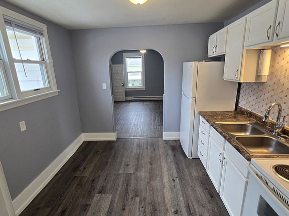 **2 bedrooms 1 bath. Fridge, oven and microwave provided . Baseboard heating, Washer and dryer hook-up in basement, access from outside door. Upstairs unit with off street parking in the back. Ideal location close to grocers and downtown.