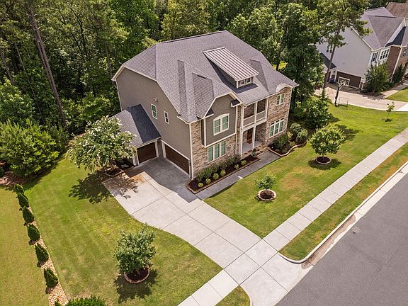 Welcome to The Peninsula at Amberly where luxury living meets everyday convenience in one of West Cary's most desirable enclaves. Backing to a private wooded buffer with direct access to the Tobacco Trail, this 6-bedroom, 6-bath home offers over 5,300 sq. ft. of flexible living, including a rare finished basement. At the heart of the home is a chef's dream kitchen with an oversized center island, 48'' 6-burner range, and seamless flow to the living and dining spaces. Multiple screened porches, a private deck, and tree-lined backyard create tranquil spaces to relax and entertain. The walk-out basement is a showstopper, featuring a bonus room, theater, gym/game space, plus a bedroom and full bath ideal for guests or multigenerational living. Residents enjoy resort-style Amberly amenities: two pools, fitness center, sports courts, playgrounds, and community events, all minutes from RTP, RDU, shopping, and dining. This is more than a home it's a lifestyle.