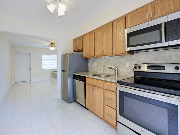 Welcome to this beautifully updated villa studio in the desirable Holly House, an age 55+ community! This charming home features a modern kitchen with newer oak cabinetry, updated appliances, and a brand new refrigerator. Recent upgrades include an updated electric panel and a new water heater. The smooth ceilings and neutral tile flooring throughout create a fresh, contemporary look. Unique in its layout, this rare studio has no traditional bedroom, offering an open and versatile living space. A spacious walk-in closet provides ample storage, and the front and rear patios are perfect for outdoor relaxation. Conveniently located just steps from the Publix shopping plaza and only minutes away from downtown's vibrant restaurants, shops, and the Lantana beach. This gem is a must-see!
