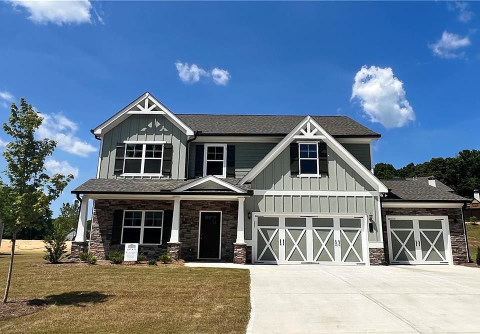 The Canyon plan with 4 bedrooms and 3 1/2 baths is Complete and ready to move into. Located on Lot 72. The new construction community of Jefferson Trail is conveniently located 1 mile from the highly sought after City of Jefferson School cluster & I-85. Everything you have been looking for in a quaint 78 home neighborhood. The Canyon plan offers open concept living. The gourmet kitchen features custom white cabinetry with soft close drawers, walk in pantry, upgraded stainless steel appliances, granite, 36" gas cook top, & a built in wall oven. The large center island is perfect for all of your prepping needs. The spacious family room boasts Coffered ceilings, and a 42" fireplace w/hearth & a gas starter. Custom cabinets are also included in the main floor tiled laundry room. You will find 5" hand-scraped engineered hardwoods throughout the main living area. Separate dining room and/or Flex Space. - perfect for a home office. Located upstairs is a spacious Owner suite with 2 walk in closets and a spa like bath with a large tiled shower and separate granite vanities. 2 of the secondary bedrooms share a full bath, and the 4th bedroom comes complete with its own private bath. There is a covered back porch with fireplace - Perfect for additional entertaining space. A 3 car garage includes insulated carriage doors and an opener. Sodded lawn and Irrigation all 4 sides. Amenities include sidewalks, pool, playground and a walking trail. INSIDE photos are STOCK photos. OUTSIDE PHOTOS ARE OF ACTUAL HOME. Home is complete and ready to move into.