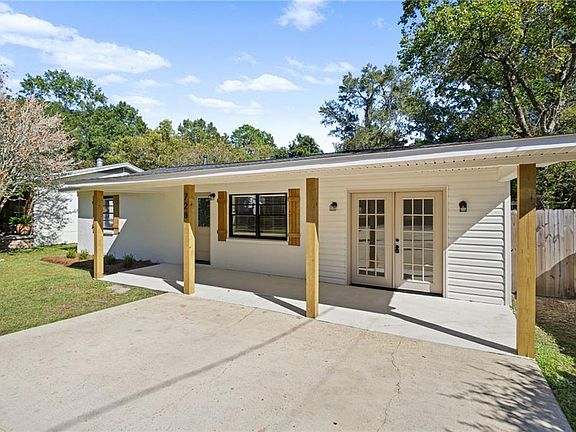 MOVE-IN READY in Saraland! This beautifully updated 4-bedroom, 2-bath home offers over 1,700 sq ft of comfortable living space and modern finishes throughout. Fresh interior and exterior paint set the tone, complemented by LVP flooring and stylish light fixtures. The exterior features charming wooden front posts and shutters for a modern-farmhouse touch, along with fresh landscaping and a flat driveway for convenient parking. It also features a new architectural roof & water heater. The kitchen shines with freshly painted cabinets, new hardware, and granite countertops. Both bathrooms have been upgraded with new vanities, and the home includes updated plumbing and electrical for added peace of mind. Inside, you’ll find plenty of storage space, and the primary bedroom features a flexible bonus area — ideal for a home office, nursery, or private sitting room. Enjoy outdoor living on the covered front porch and enclosed back porch overlooking a flat, fenced backyard. Blinds are installed throughout, and a transferable termite bond offers extra assurance to the new owner. Don’t miss this spacious and thoughtfully updated home in a prime Saraland location — schedule your showing today! Buyer and Buyer's agent to verify any and all information deemed important for this transaction. Listing agent makes no representation as to the accuracy of square footage.