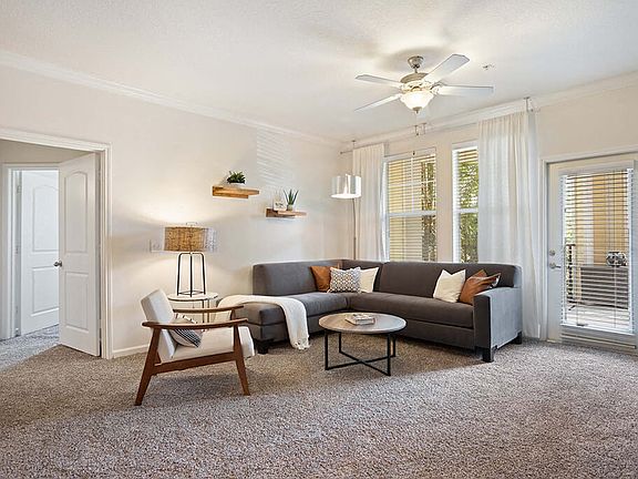 Two-Bedroom Apartment Home with Airy 9' Ceilings, Crown Molding in Living & Dining Areas, Maple Cabinetry, Black GE Appliances, Granite Countertops, Island Kitchens*, Built in Microwave, Custom Lighting & Ceiling Fans, Ceiling Fans in All Bedrooms & Living Rooms, Ceramic Tile or Designer Wood Floors in Kitchen & Baths, 2-Inch Faux Wood Blinds, Garden Tubs in Select Apartments, Custom Closets, Spacious Closets, Additional Storage Areas*, Patio or Balcony, Lake & Preserve Views*, and Washer & Dryer Included *Available in Select Apartments