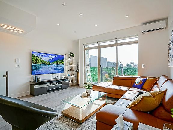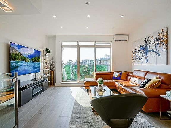 Stunning Renovated 2 bd/2bath Townhouse with 1,156Sqft of living space & 703Sqft of outdoor space including a Rooftop Terrace featuring 360 views of North Shore mountains & City Skylight. Functional reverse floorplan with spacious living space & good size bedrooms featuring a huge patio off the master bedroom. Bright South facing open concept living area perfect for entertaining. The renovations include dream Kitchen with Quartz countertops, custom cabinets & Samsung appliances including an air fryer oven, Twin cooling fridge with beverage drawer & built in microwave. High quality laminate floors, modern light fixtures/pot lights, Brilliant smart home control, Mysa smart thermostats, Kasa light switches, updated washer/dryer & split AC on top floor. Roof replacement currently underway.