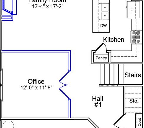 This Kershaw plan includes three bedrooms and two-and-one-half bathrooms. The kitchen includes stainless steel appliances with a gas stove and granite counters with an island and overlooks the great room with a gas fireplace. The first floor also features a spacious office space with glass French doors. Upstairs, you'll find the primary suite with a vaulted ceiling, a five-foot shower, a dual sink quartz vanity, and a walk-in closet. A loft area is also located upstairs leading to the two spare bedrooms, each with walk-in closets.
