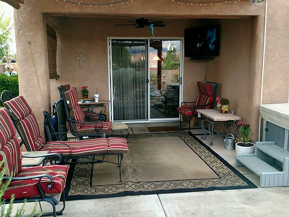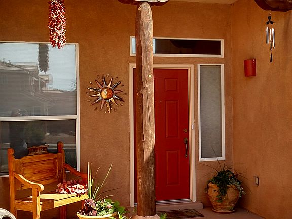 Remarkable, Southwest style, semi-custom built home located in a cul-de-sac in Enchanted Hills! This impressive home hosts 2,345 sf with 3 bedrooms, 2.5 bathrooms, 2 living areas and a 3-car garage! Enter the home through the covered patio into the large open entry hall. Main living area features a Kiva gas fireplace with hearth. Open Kitchen with cherry stained maple cabinetry, solid counter tops, center island, gas range and a butlers pantry! Formal dining with kitchen entry. Large master retreat with private bath. Master bath has dual sinks with large vanity, garden tub, separate glass shower and a deep walk-in closet. Outside enjoy two covered patios! Main patio extended with custom pergola! Take in the gorgeous city lights and mountain views from the landscaped back yard!