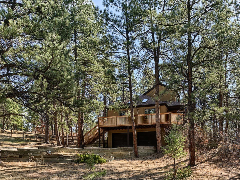 Open House, Sunday May 7th from 1:00 - 4:00 pm! Back on the market due to buyer's loan falling through. Selling for less than April 2017 appraisal. Solid 3 bedroom, 3 bath home amongst the towering pines located in the charming Sage Port community. This updated 1676 sq. ft home features a great room with solid teak hardwood floors, open floor plan, vaulted ceilings and sky lights, updated kitchen with slab granite, solid knotty alder cabinets and stainless steel appliances. Home has a large new deck accessible from the great room and sun room. The private master suite is complete with updated bathroom, bamboo flooring, private deck access, vaulted ceilings, built in drawers, his and her (walk in) closets and opens to a loft. Updated Pella windows throughout. The detached, heated studio is perfect for your home office or a quiet creative space located just off the large rear patio. Easy access to Castle Rock, Denver, or Colorado Springs.