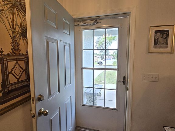 Fully screened lanaiBackyard oasisSplit-bedroom floor planFamily and dining areaScreened doorChain-link fenceOpen kitchen
