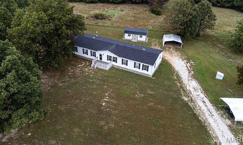 You'll want to see this incredible property just outside of Salem, Missouri! Over 5 acres of level land with a farm side view AND all of the amazing upgrades you hardly ever see in a manufactured home on a permanent foundation. The kitchen shines with custom cabinets, granite counters, tile backsplash, and stainless steel appliances, to include a double oven for entertaining. Just off of the kitchen is a roomy laundry room and a walk-in pantry. You'll enjoy two separate living spaces and a separated bedroom floor plan. The primary suite is quite large and has an office/dressing room and a walk-in closet off the bath. Outside you'll find an amazing deck setup surrounding the above-ground pool, an shed w/ electric, two carports to protect your vehicles and equipment. There is also an additional concrete pad in the front of the lot for a possible future outbuilding. Definitely add this one to your list!