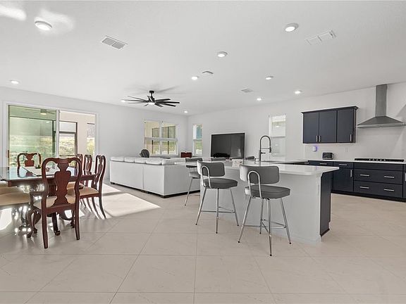 Built in 2025 with upgrades galore, this Wisteria model is nestled in the new community of Weybourne Landing located within Ocala's premier 55+ 'On Top of the World'. Gated access adds privacy and exclusivity when entering the neighborhood, where you own your own lot (no land lease). Step inside your immaculate and airy Florida home, greeted in the foyer. The open-concept floor plan allows for full-home views of a stately and functional kitchen and great room living space; and the upgraded 24x24 tile flooring runs throughout the entire residence- no carpet to fuss over. The gourmet kitchen is an entertainer's masterpiece with its L-shaped island covered in quartz, soft closing drawers, specialty under-cabinet lighting, and full-sized walk-in pantry. New stainless steel appliances, including a gas cook top makes preparing meals fun and easy; and, the built-in microwave and oven add sleek lines and sophistication in the kitchen. The refrigerator can fit more than you may need, and the Samsung matching washer and dryer appliances convey as well! The primary bedroom suite overlooks the backyard, can easily fit a King-sized bed and nightstands, and offers two spacious walk-in closets for perfect organization. The ensuite bathroom adds the 'wow factor' balancing darker solid stone counters and tile. The walk-in shower was thoughtfully designed for wheelchair accessibility. Two more guest bedrooms split between another full bathroom with tub and shower combination creates the perfect space for loved-ones to visit. Enjoy the modern conveniences of Smart technology at home; and grab your favorite beverage and enjoy the sunsets from the covered front porch. Feel secure in parking both your vehicle and golf cart in the two-car garage. Outdoors, the irrigation system keeps the yard looking like perfection, and the back patio offers ample room to lounge or entertain. Weybourne Landing residents enjoy access to an amazing pool, fitness center, pickleball courts, dog park, clubhouse, mini-golf, and an outdoor pavilion with BBQ grills. The monthly HOA includes trash pickup and internet. Utilities include Teco Peoples Gas, Bay Laurel Water, Duke Energy, and Golden Leaf. Ask for a full list of UPGRADES in this one-owner, 2025 build! This property is everything you've dreamt about, chalk full of amenities, within close proximity to hospitals and medical care, great restaurants and entertainment including the Circle Square Cultural Center, and easy shopping outings- cruise by golf cart to your favorite destinations. Add this special home to your list of must-sees; you could be here before it's time to decorate for the holidays!